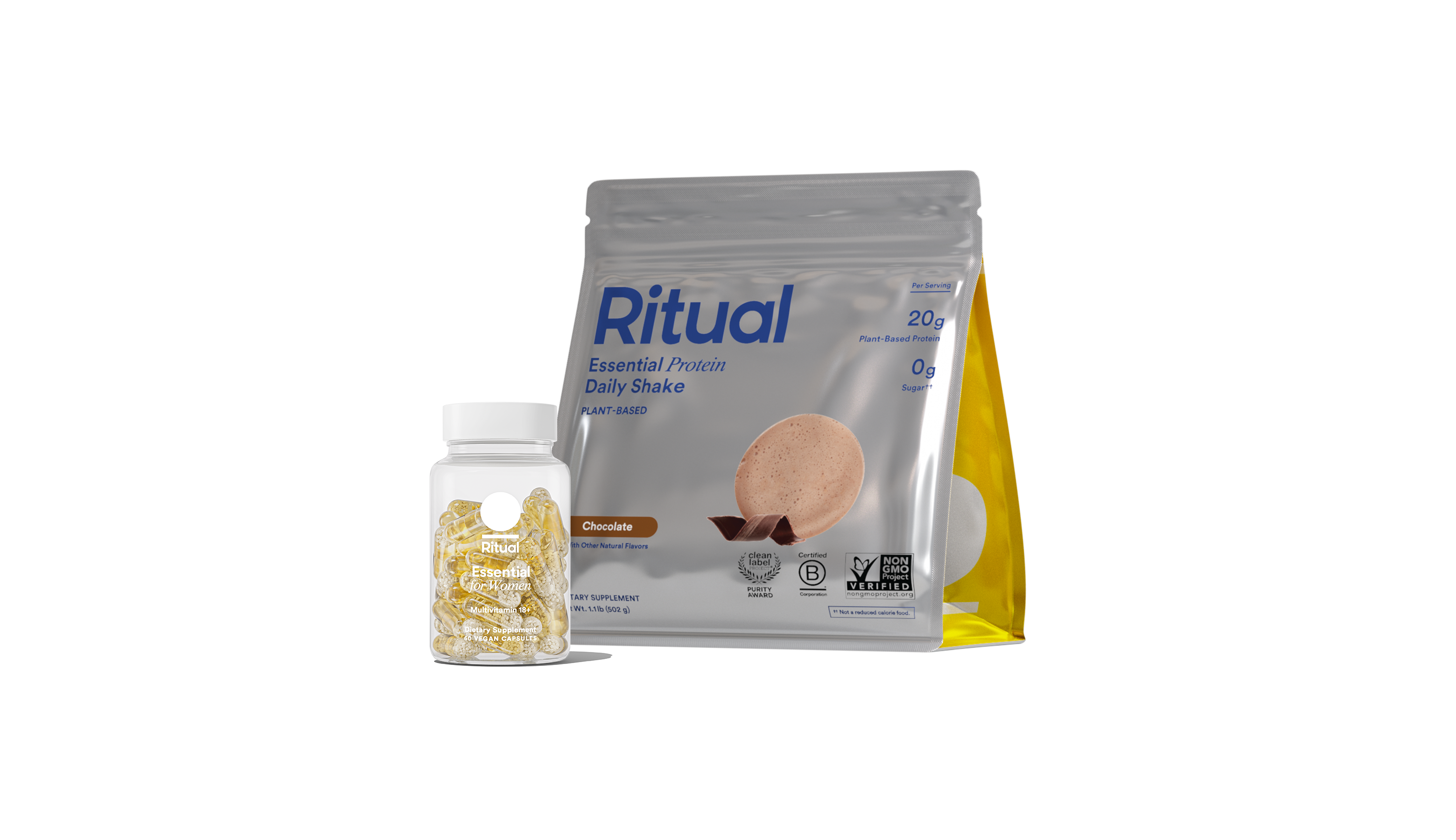 Our clinically-backed multivitamin for women 18+, plus our clean, plant-based daily protein.*