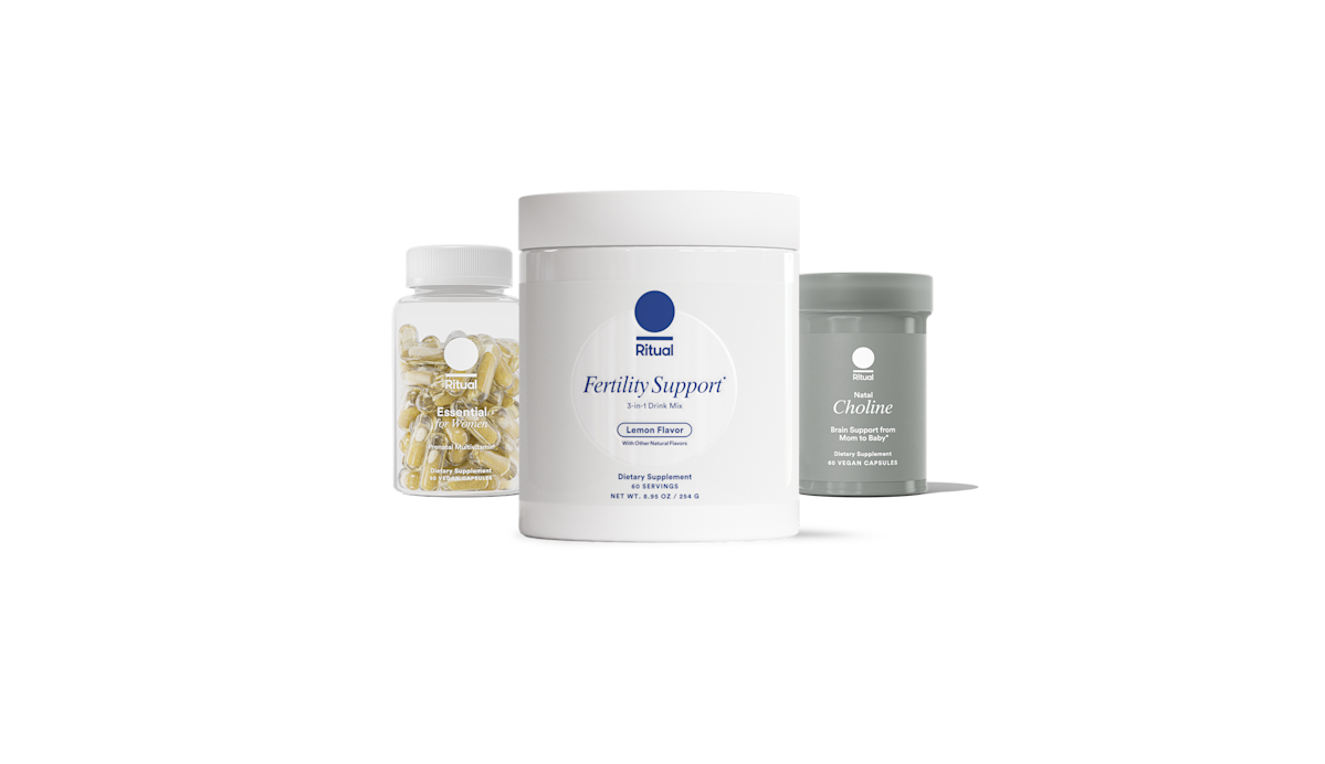 Our 3-in-1 Fertility Support supplement formulated to support conception outcomes, our next-generation prenatal for before and during pregnancy, and our Natal Choline for mom-to-baby brain support.*